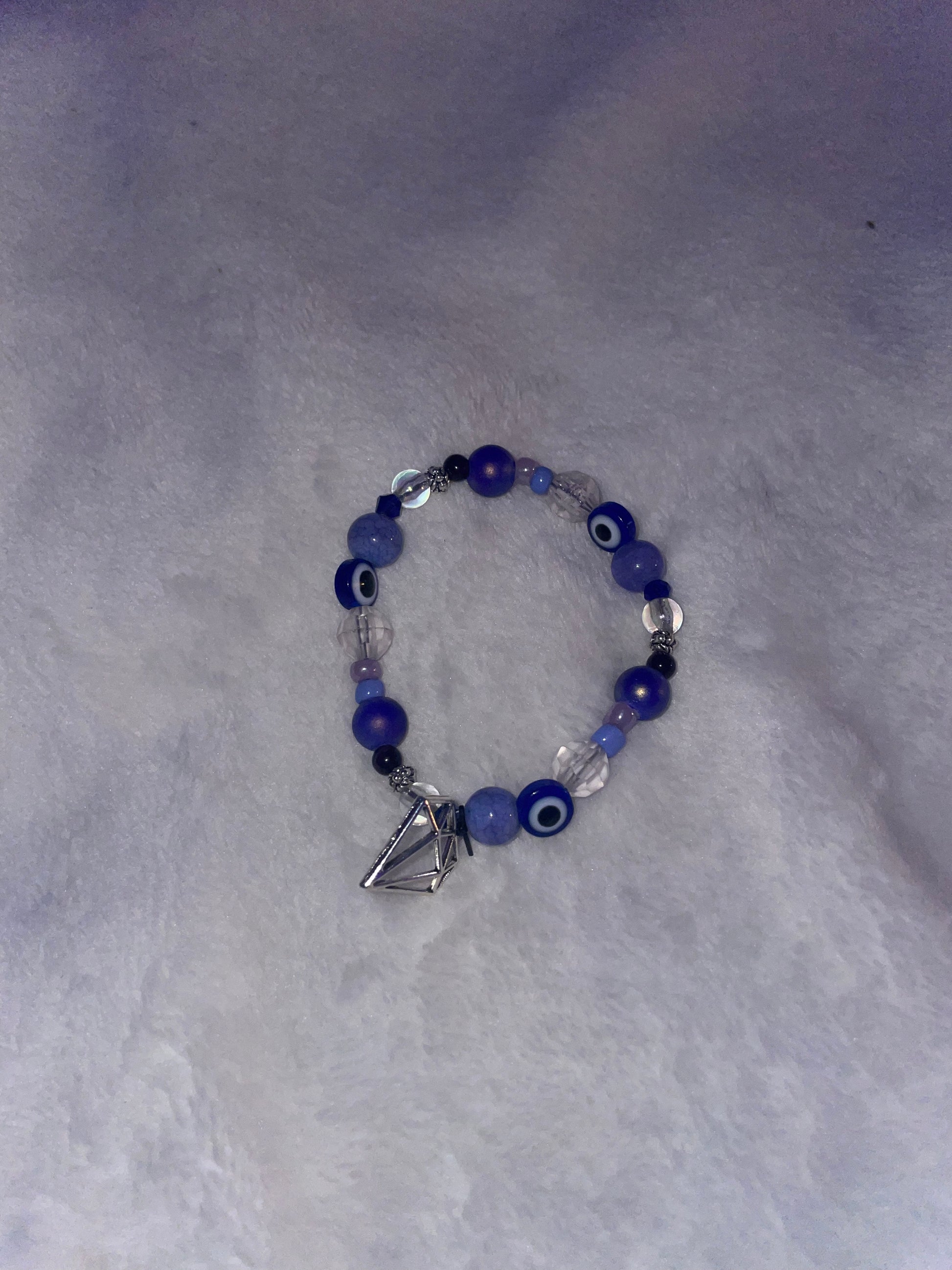 Amethyst with blue evil eyes and a diamond outline charm