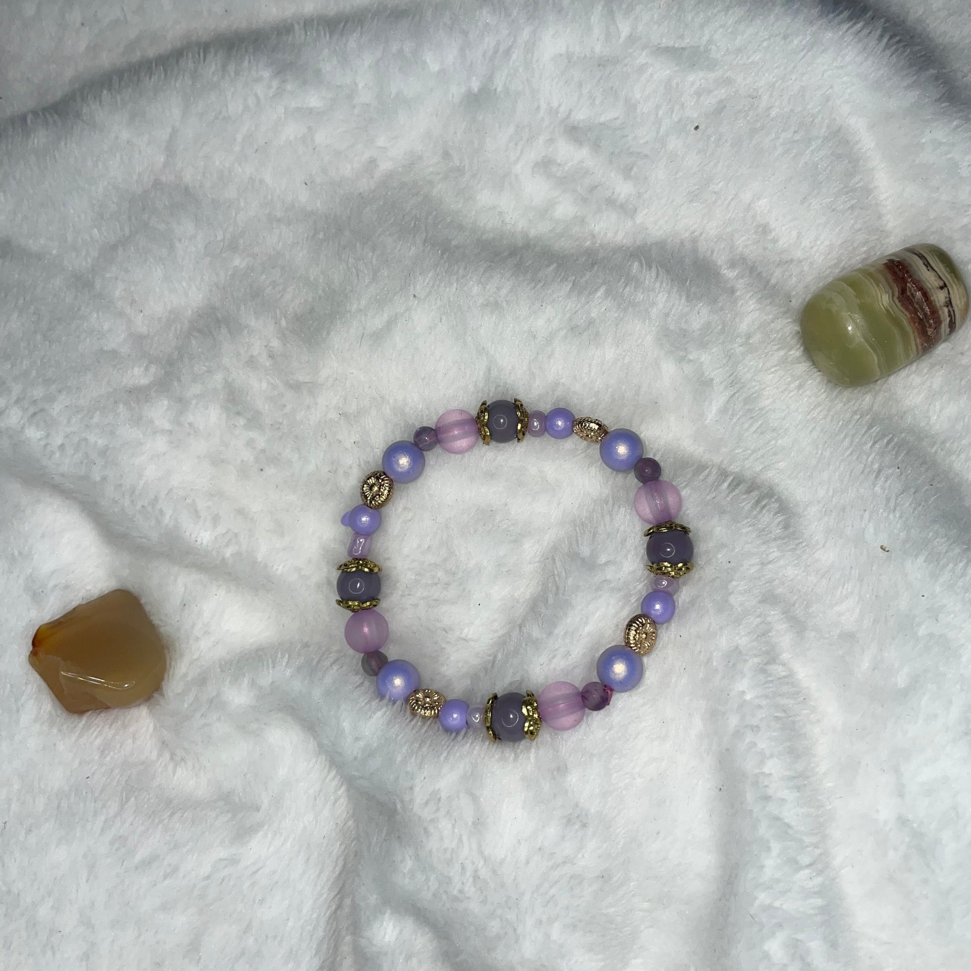 bracelet #1 purple and gold accents and amethyst with little golden flowers Size 7 in