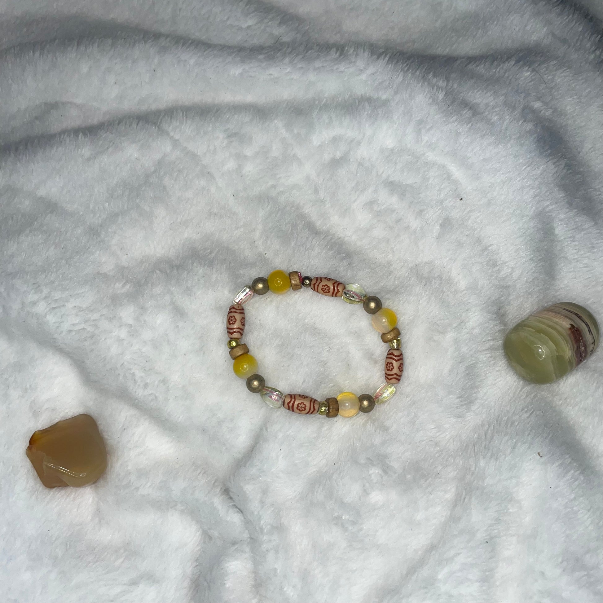 bracelet #1 yellow and gold accents with small yellow hearts. Size 5.5